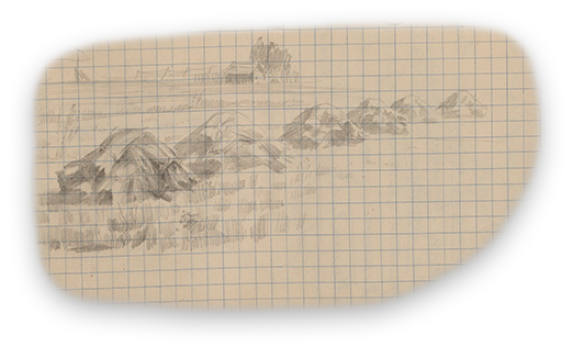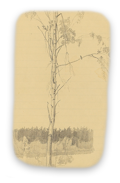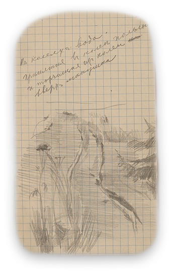 Подготовку к работе Корин начал с изучения произведений известных мастеров-пейзажистов из собрания музея изящных искусств. То, что находит в нем отклик, Павел Корин старается запомнить, отмечает понравившиеся детали в своей записной книжке.