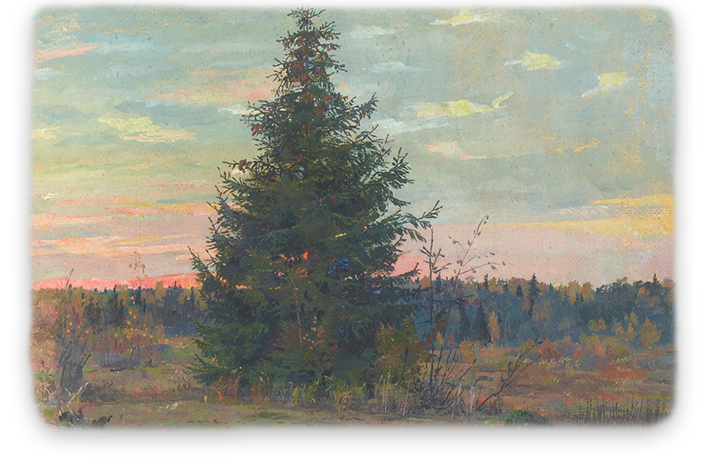 «Он готовился, много думал об этом пейзаже. Хотел создать поэтическую, торжественную панораму заката с необъятными далями — „Моя Родина“».